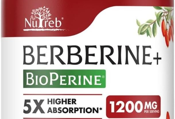 5X Berberine Absorption: Nutreb’s Berberine Supplement, enriched with BioPerine, boosts 5X higher absorption compared to regular berberine supplement for faster health benefits with our high-purity formula