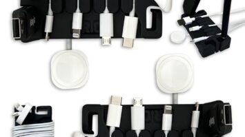 DeskBrick 2PK – Patented Non-Slip Steel-Weighted Desk Organizers & Cable Management Gadgets, Versatile Cord, Phone & Accessory Holders for Office, Home & Desktop – Best Gift for Men. Black