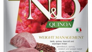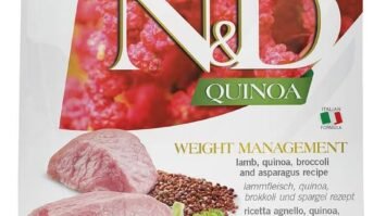N&D QUINOA WEIGHT MANAGEMENT – Lamb, quinoa, broccoli and asparagus recipe for adult dogs is formulated to meet the nutritional…